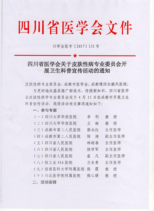 四川省医学会皮肤性病委员会此次携手成都博润医院开展义诊活动,不仅是对我院在四川省皮肤病领域权威认可,更是对我院在白癜风临床康复效果和公益领域的肯定。此次义诊积极响应卫生部号召,以实际行动回报社会,把皮肤病健康保健知识带入千家万户。
